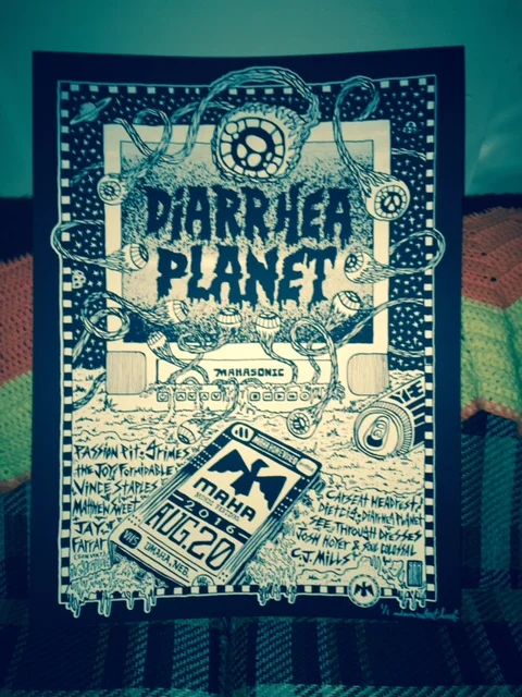 Here is my official Maha Music Festival poster artwork for @diarrheaplanet ft. the full 2016 @mahafestival lineup! Hand drawn and screen printed by Ink Tank. These babies(60+) sold out by 1pm at the festival and I have set aside 10 for sale/signed by me and numbered. YEE.